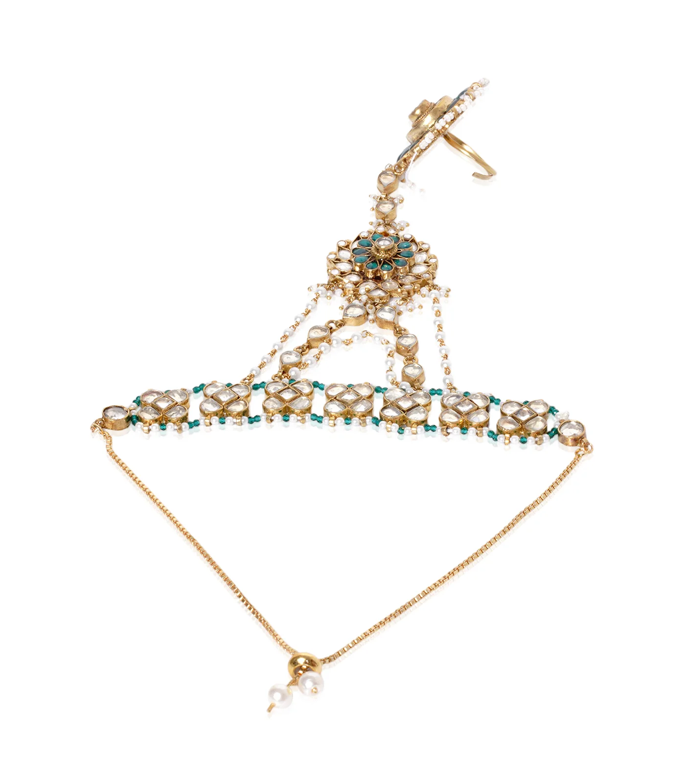 GOLD PLATED GREEN KUNDAN HATHPHOOL